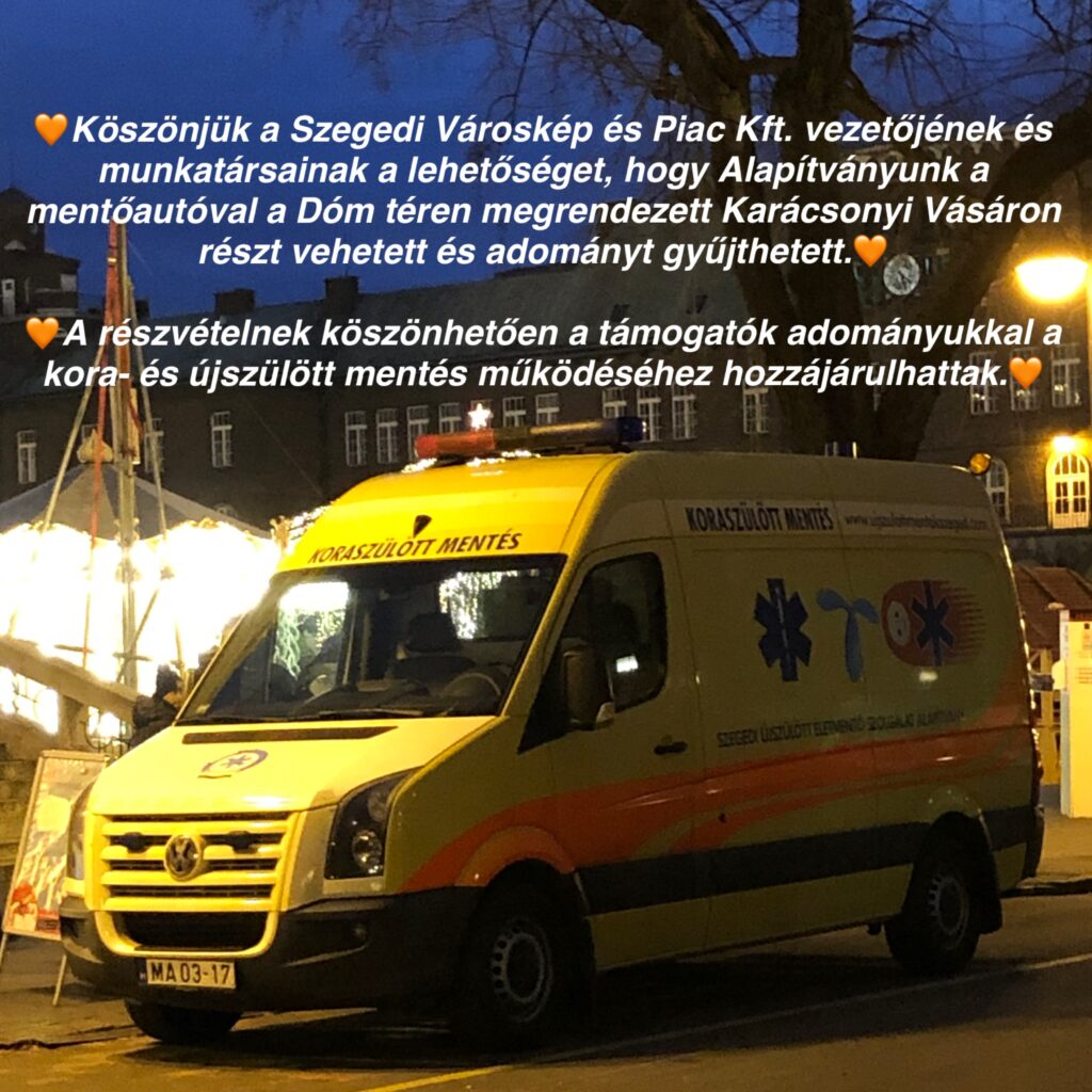 🧡Köszönjük a Szegedi Városkép és Piac Kft. vezetőjének és munkatársainak a lehetőséget, hogy Alapítványunk a mentőautóval a Dóm téren megrendezett Karácsonyi Vásáron részt vehetett és adományt gyűjthetett.🧡