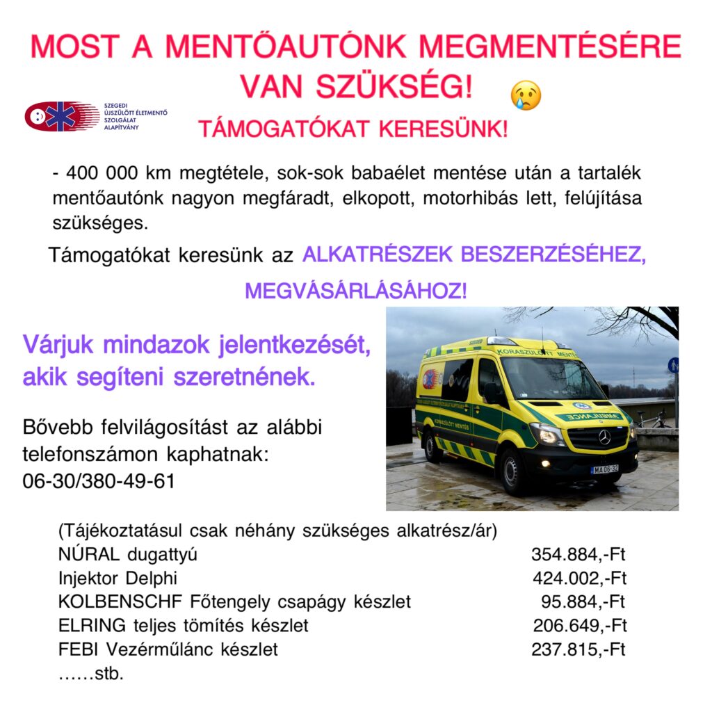 Kérjük támogassa a Szegedi Újszülött Életmentő Szolgálat Alapítvány tartalék rohammentő autójának